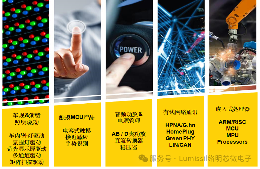 絡明芯微電子(Lumissil),是全球技術領先的集成電路設計企業,其分支機構分布于廈門、武漢、蘇州、合肥、深圳、上海、北京、中國香港、美國、日本、新加坡、歐洲、印度和韓國及其它地區。主要產品為用于中低功率的RGB混色和高功率照明應用的LED驅動、音頻驅動、電源、MCU和傳感器、GreenPHY和有線通信等各種集成電路芯片。主要應用于汽車;通信;工業、醫療、家電;消費電子等市場。更多資料請關注我們的官網:http://www.lumissil.com